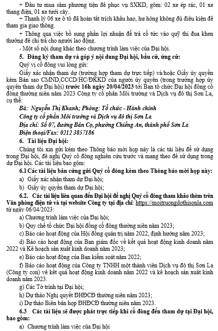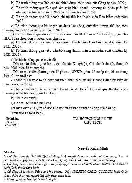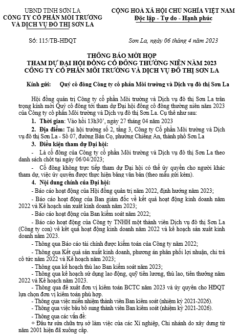 THÔNG BÁO MỜI HỌP THAM DỰ ĐẠI HỘI ĐỒNG CỔ ĐÔNG THƯỜNG NIÊN NĂM 2023